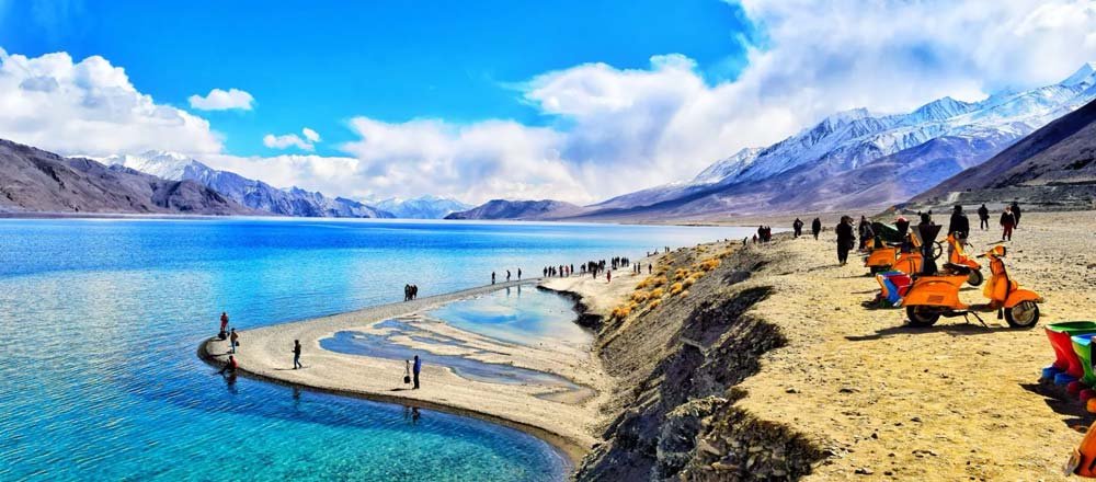 Today, after breakfast, drive to the mesmerizing Pangong Lake (14,500 ft) following the scenic Shyok River route. The 6–7‑hour journey offers spectacular Himalayan vistas.